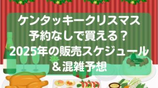 「ケンタッキーのクリスマスチキンを予約していないけど、やっぱり食べたい!」という人も多いですよね。結論から言うと、ケンタッキーのクリスマスは予約なしでも“買える可能性はある”けれど、確実ではありません。特に午前中の郊外店舗や、当日販売枠を設...